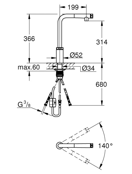 Caractéristiques du mitigeur d'évier Grohe Minta Smartcontrol Supersteel :