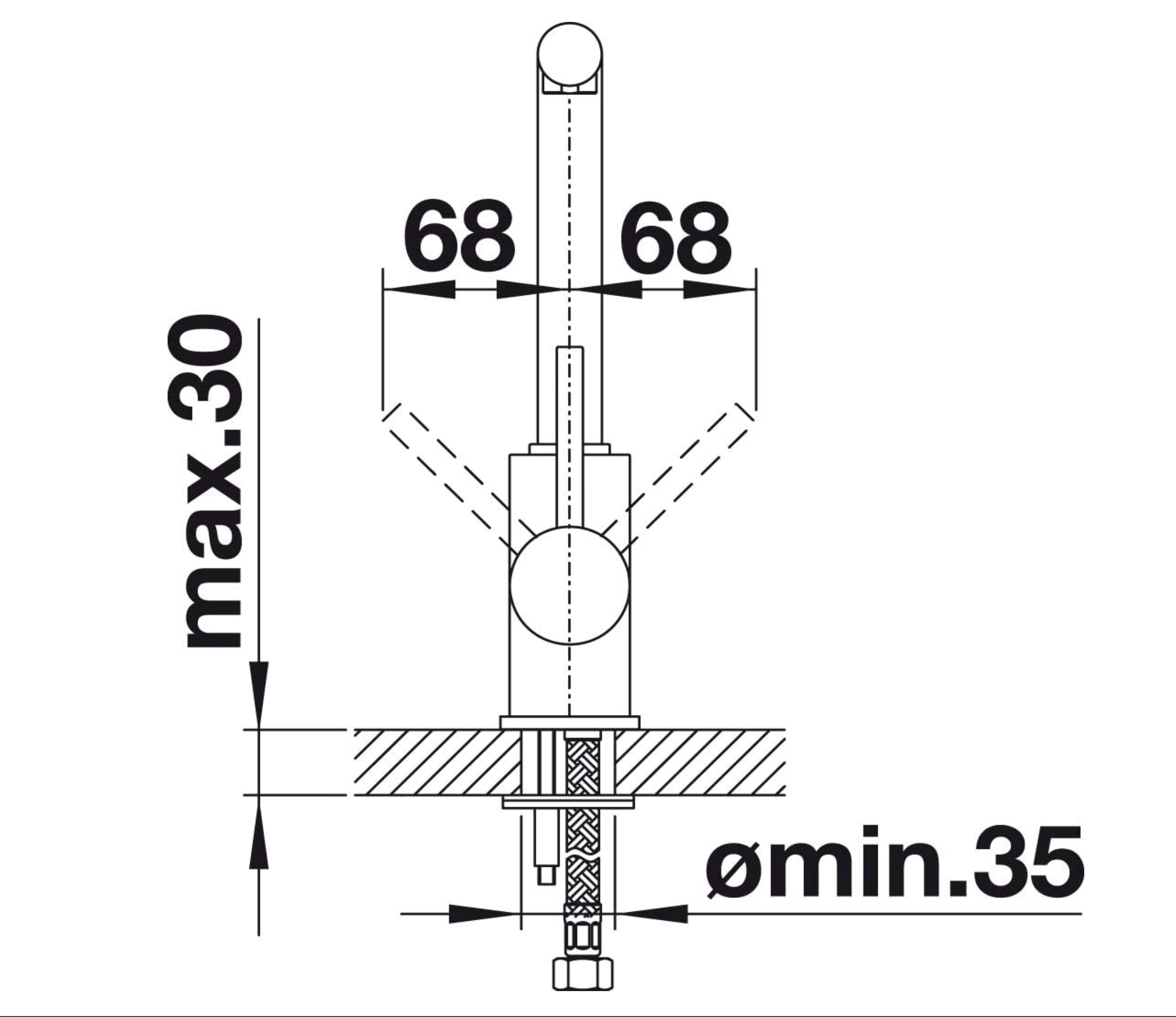 - Trou de Ø 35 mm requis