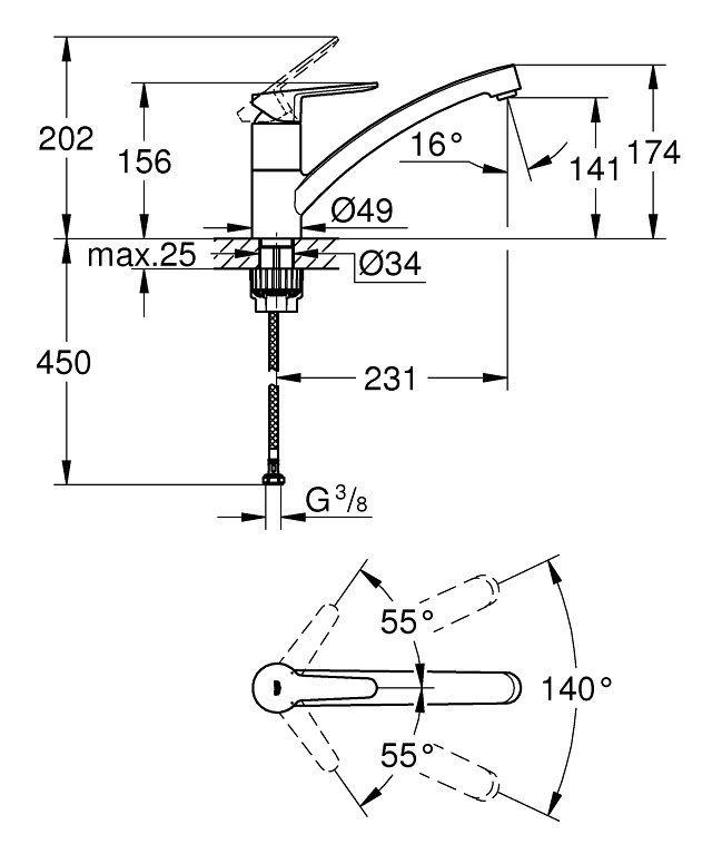 Caracteristiques du mitigeur monocommande évier, GROHE StartEco, chrome (31685000) :