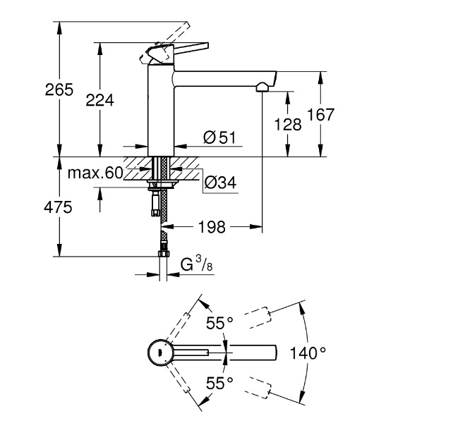 Caractéristiques du Mitigeur monocommande évier Grohe Concetto, SuperSteel (31128DC1) :