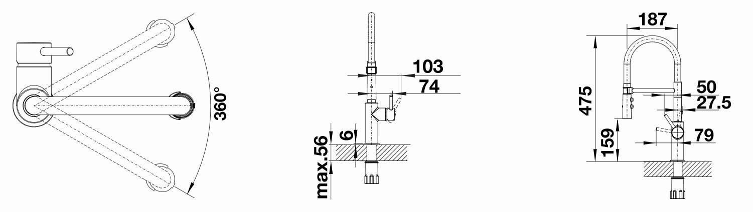 Caractéristiques du Mitigeur pour évier avec douchette double jet et bec orientable à 360°, Chromé, Blanco Catris-S Flexo (525791) :