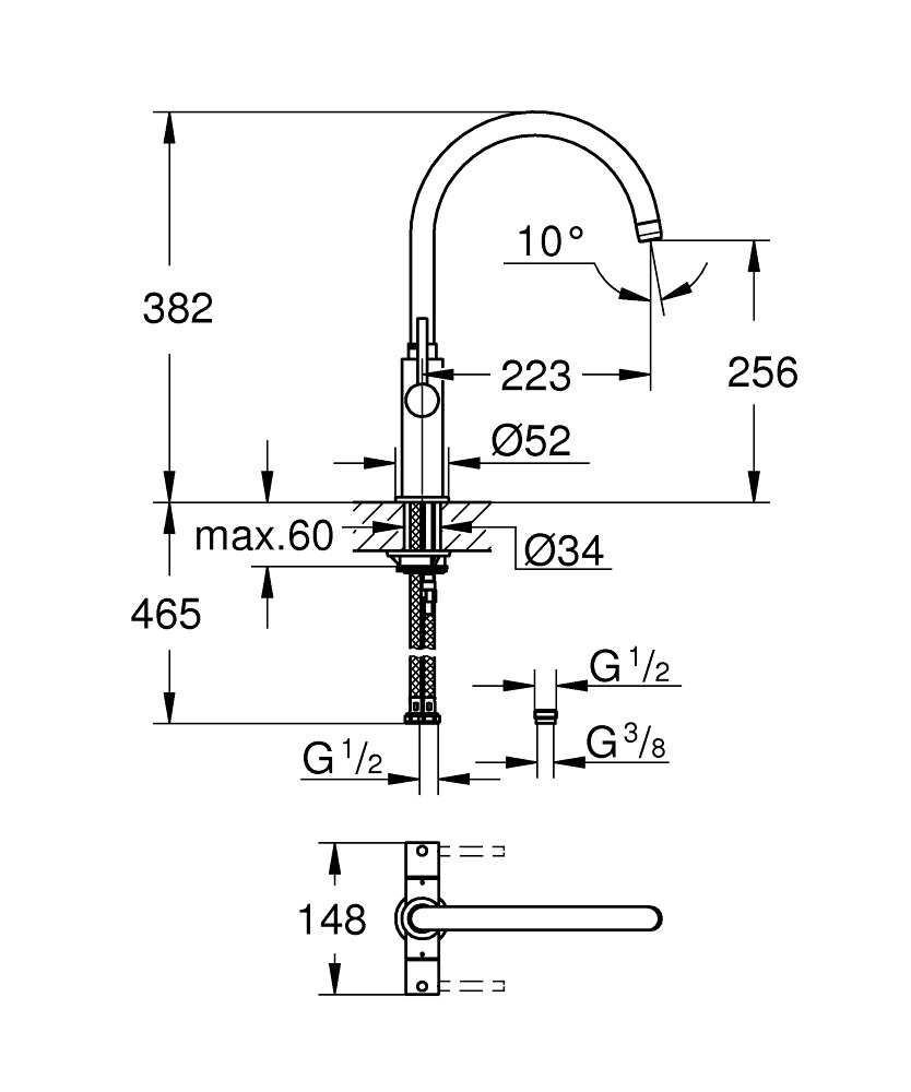 - Type de mitigeur:Col de cygne