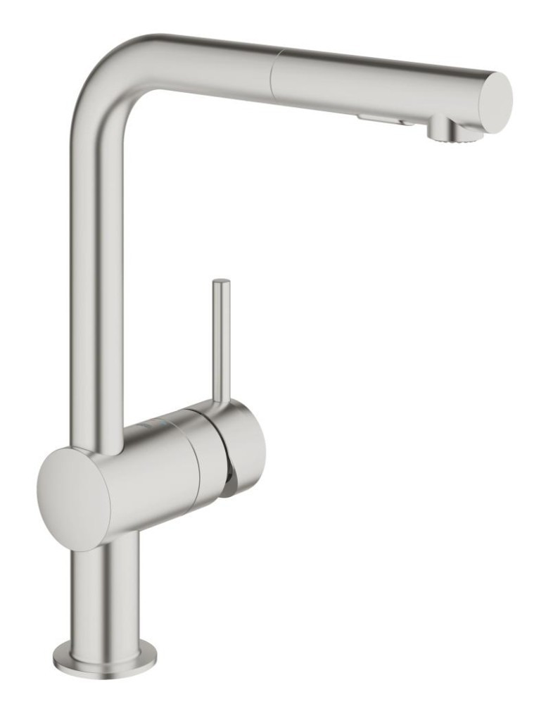 Caractéristiques du Mitigeur d’évier avec douchette extractible, Supersteel, Grohe Minta (G-30274DC0) :