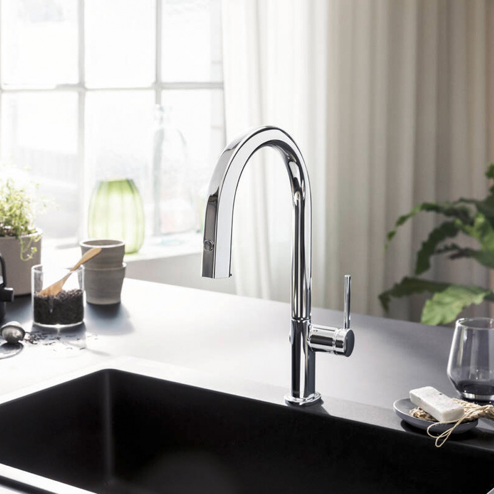 - Comprenant: mitigeur de cuisine, matériel de montage, raccordement flexibles, instruction de montage