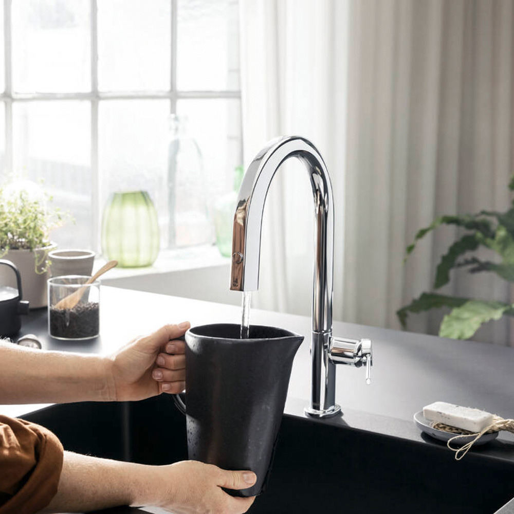 Hansgrohe Aqittura M91 mitigeur de cuisine 210 FilterSystem, avec douchette extractible 1 jet et kit de démarrage, Chrome (76801000)