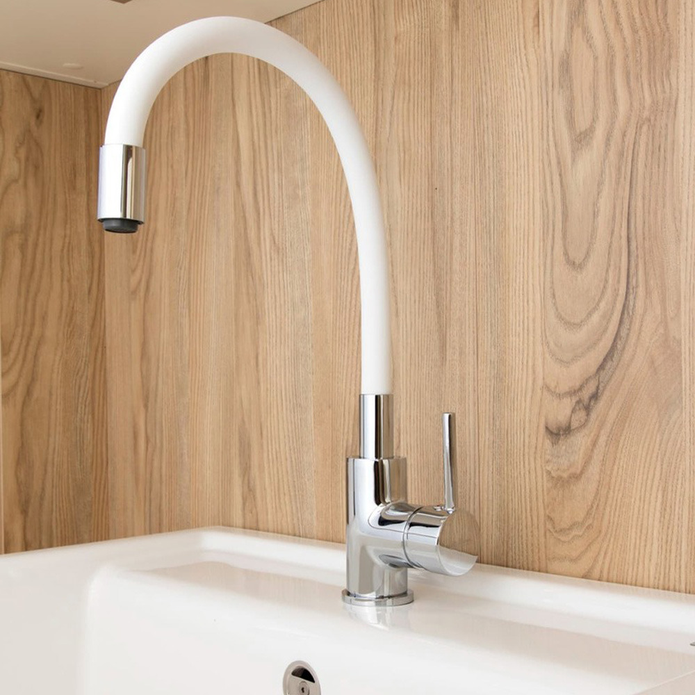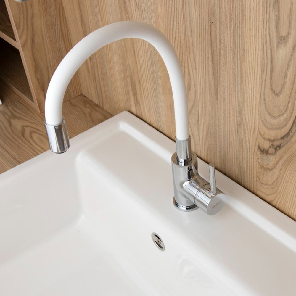 Le robinet d'évier avec un bras flexible en silicone est une aide pratique pour chaque cuisine.