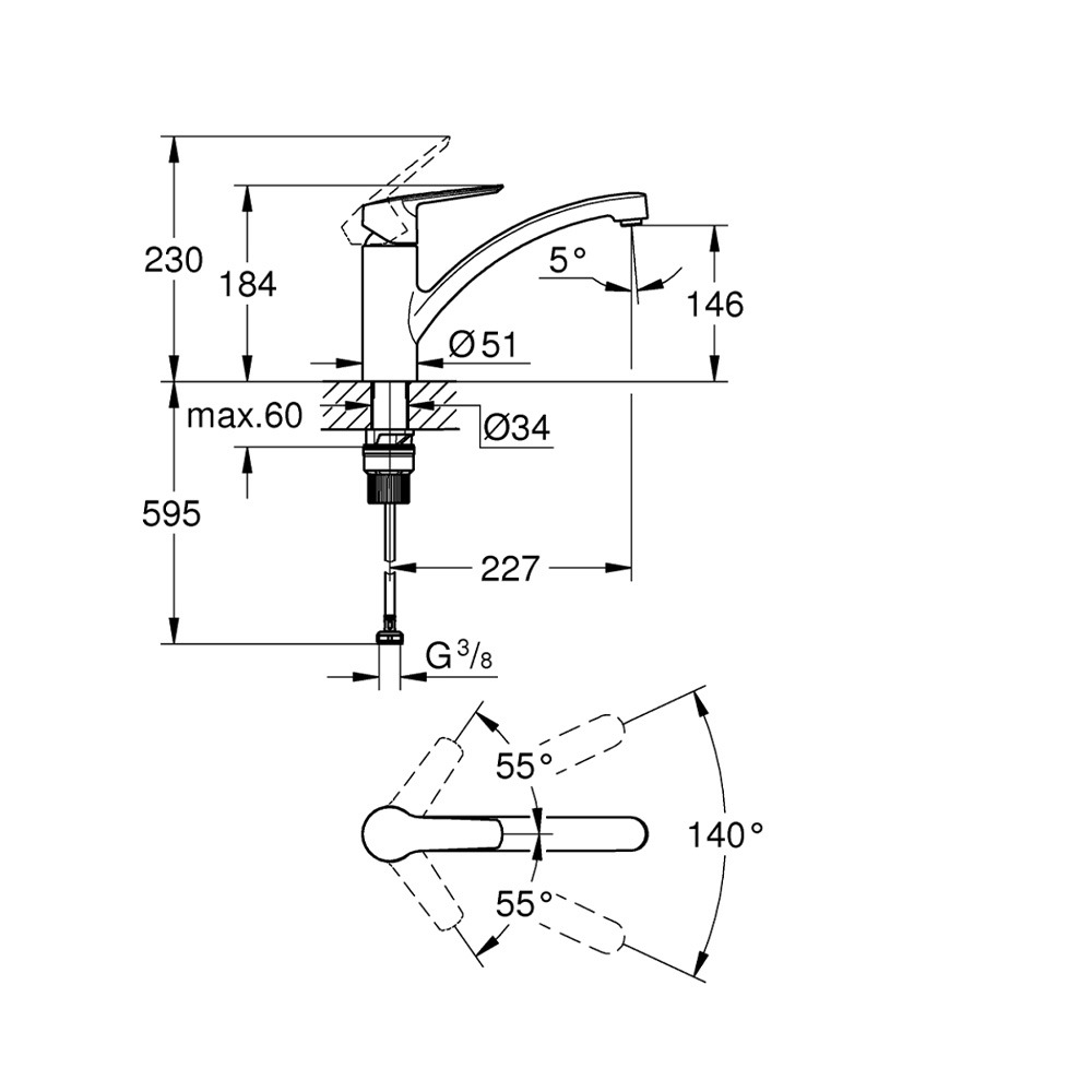 Caractéristiques du START mitigeur monocommande évier, noir mat (G-324412432):