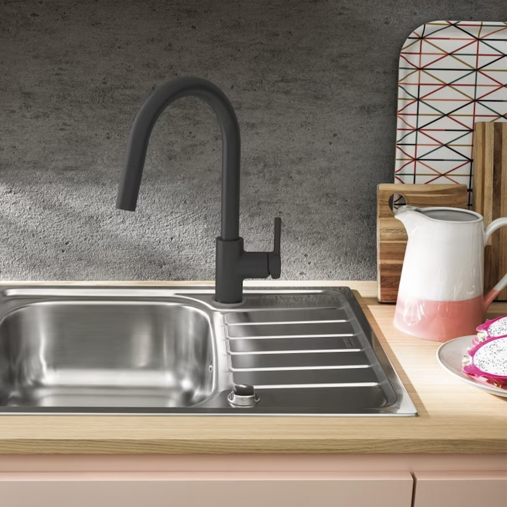 Franke Lina - Mitigeur de cuisine 215x360mm, Douchette extractible, Rotation du bec 150°, noir Onyx (115.0626.055)