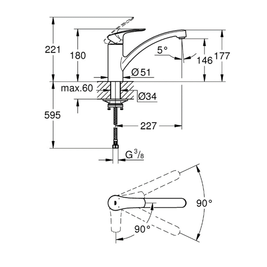Grohe EUROSMART Mitigeur monocommande d'évier, Chrome (30260003)