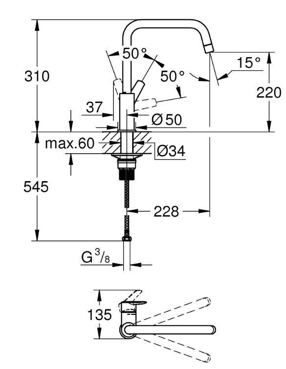 Grohe START MITIGEUR MONOCOMMANDE POUR ÉVIER, BEC MOBILE EN U Chrome (30470DC0)