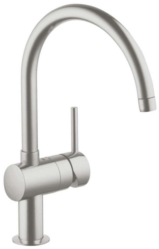 Caractéristiques du Mitigeur de cuisine taille L avec limiteur de débit et bec orientable, SuperSteel, Grohe Minta (32917DC0) :