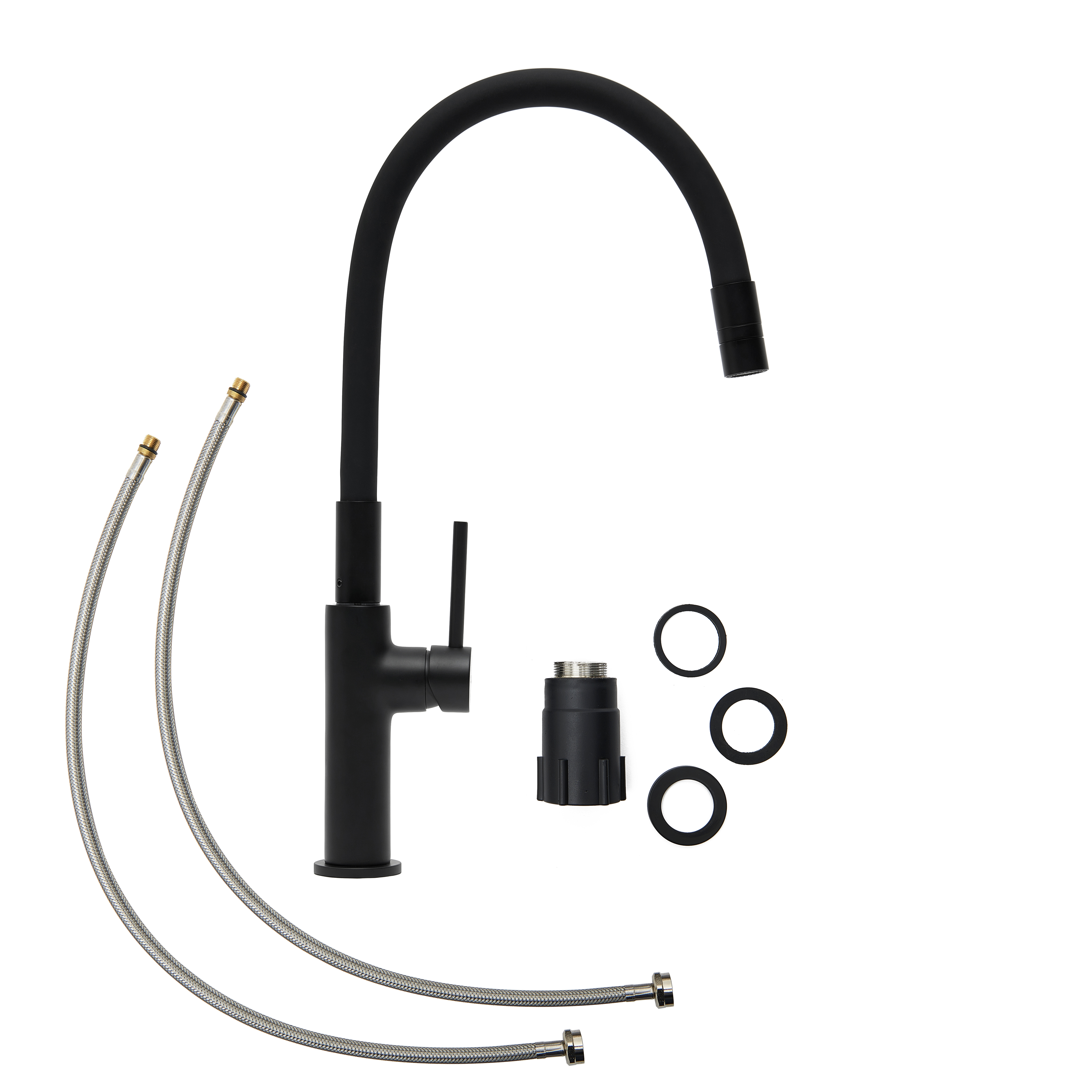 Mitigeur pour évier de cuisine avec bec flexible en silicone, aérateur Neoperl®, cartouche en céramique, noir (SATBSD290C)