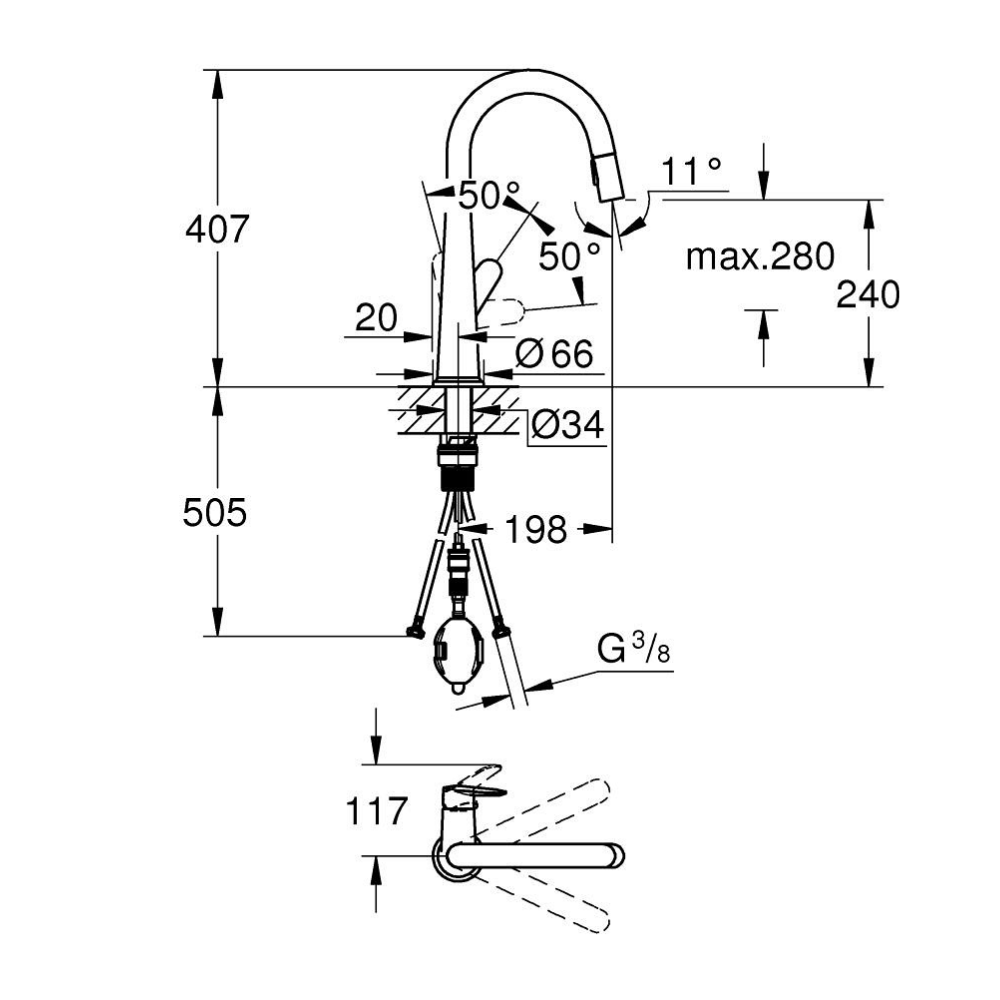Caractéristiques du robinet d’évier à levier unique, inox Grohe Veletto (G30419DC0) :