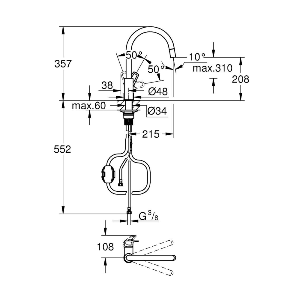 Caractéristiques du mitigeur monocommande évier avec douchette, Grohe Start Loop, chrome (G30556000) :