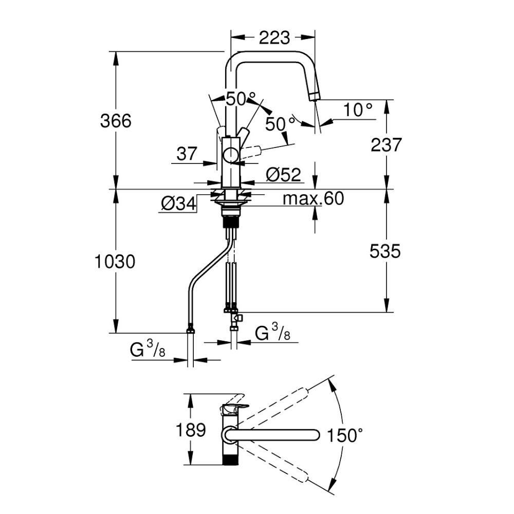 - Zone de rotation 150°