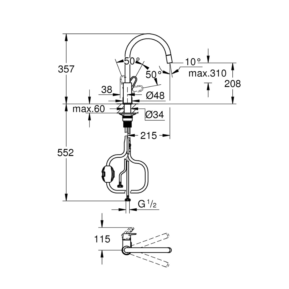 Caractéristiques du mitigeur évier 1/2" , Grohe Start Flow, chrome (G30570000) :