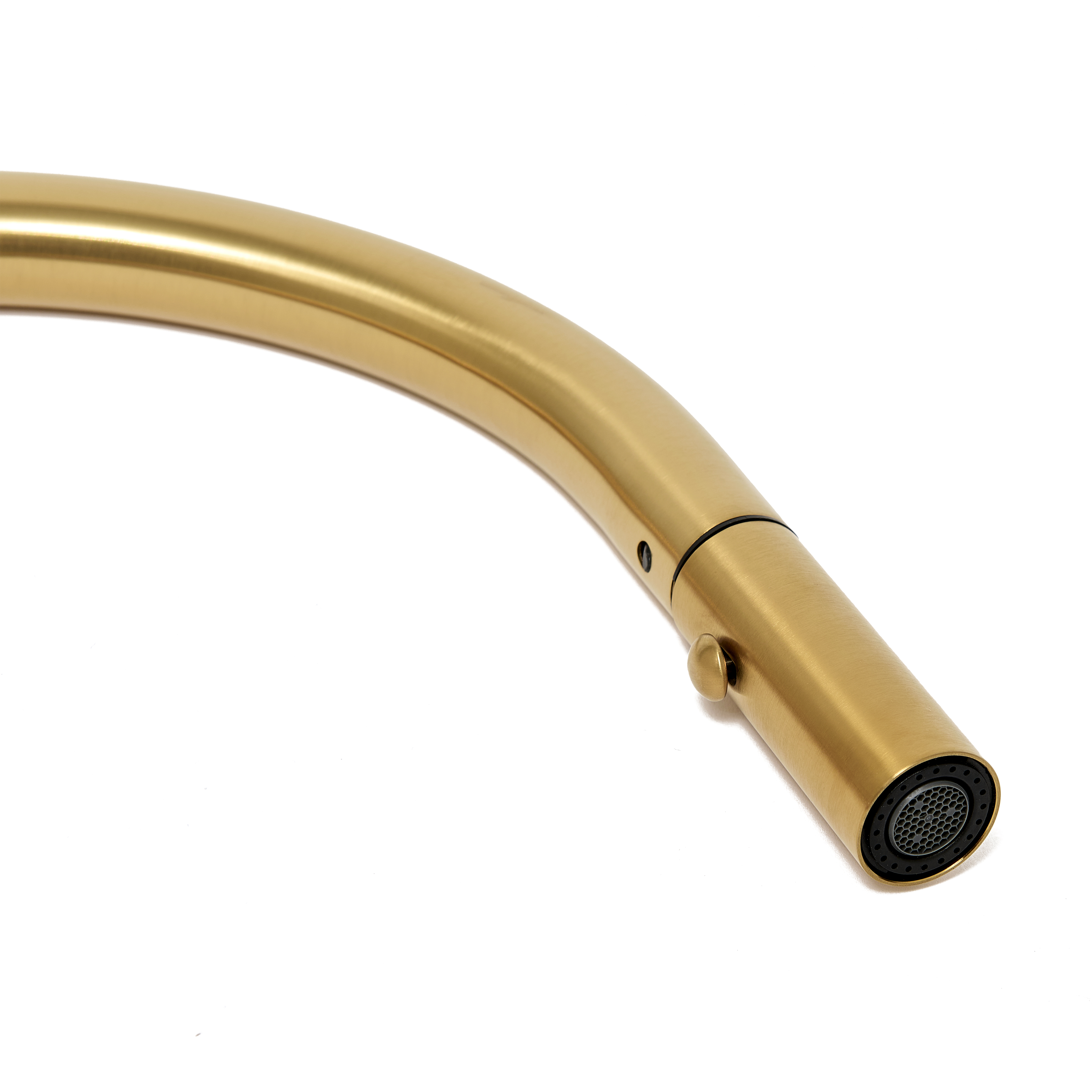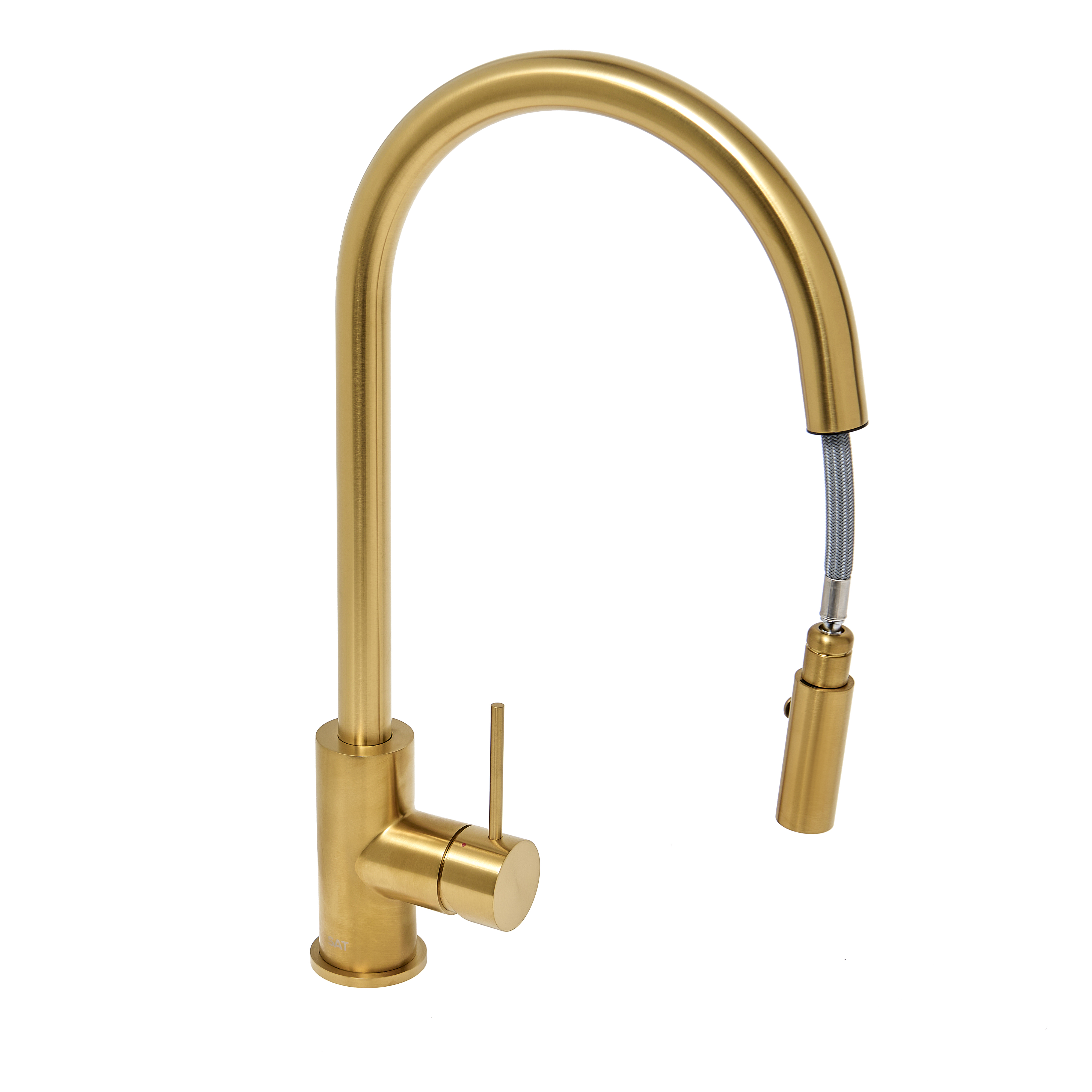 Caractéristiques du mitigeur évier à levier sur pied 44 cm avec douchette extractible 2 jets, Swiss Aqua Technologies (SAT) Aurum, or brossé (SATBAUR286BG) :