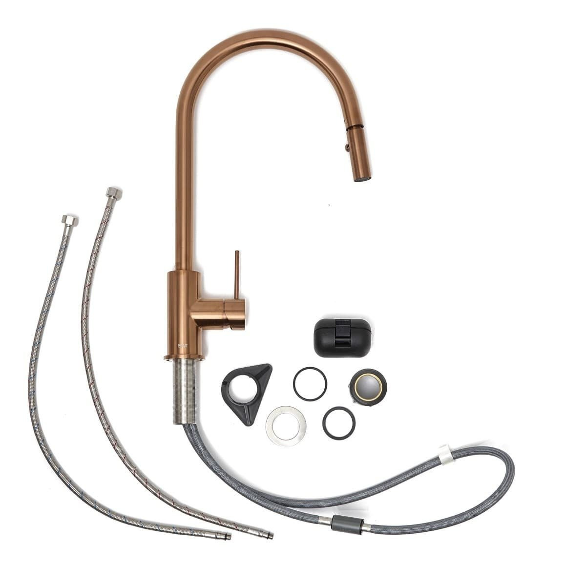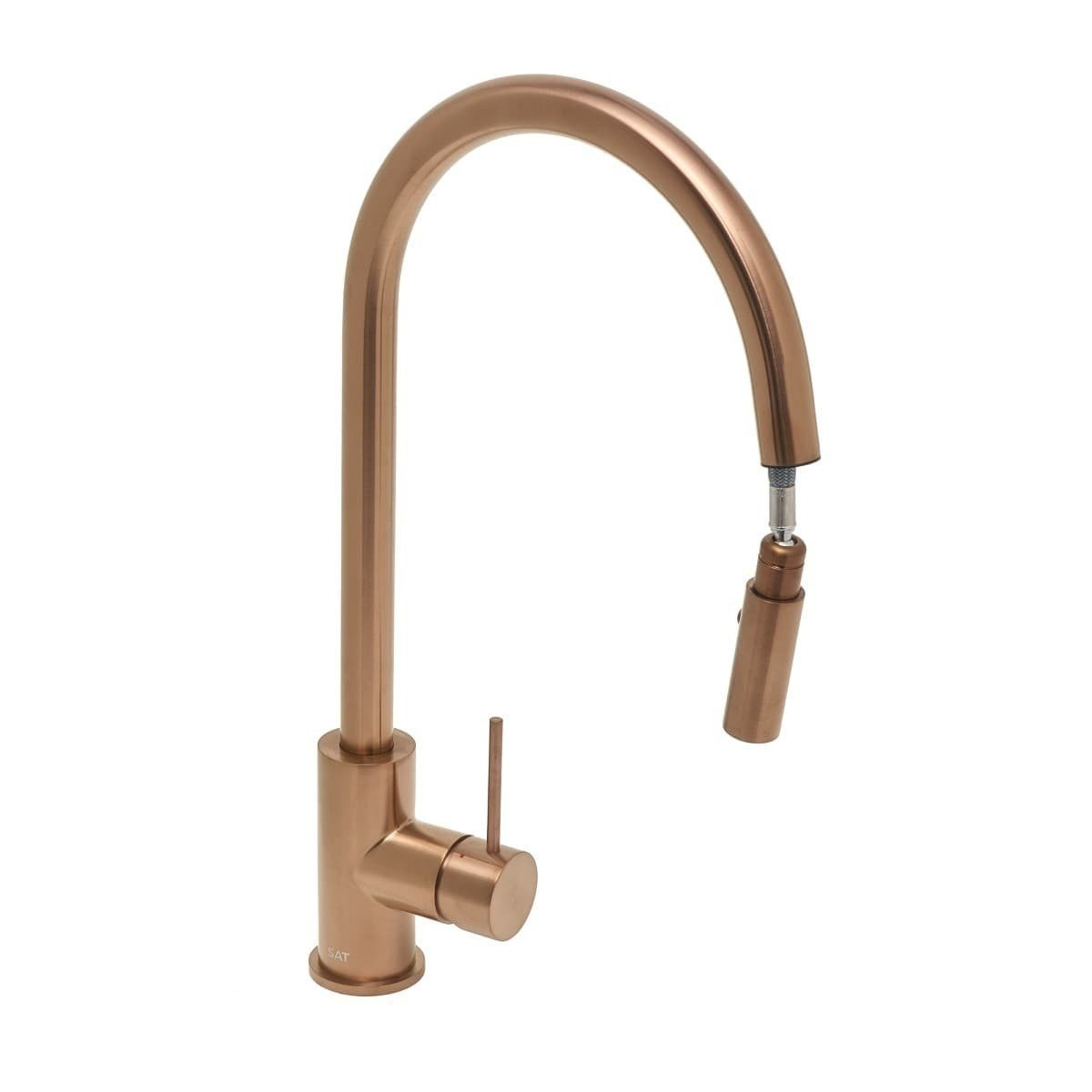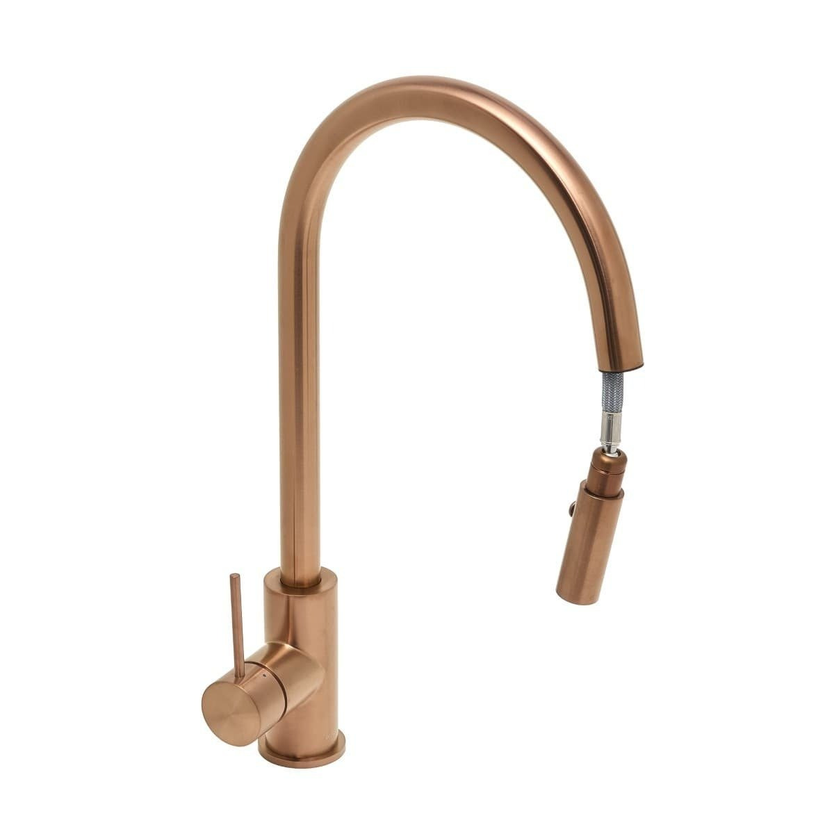 Aurum mitigeur évier à levier sur pied 44 cm avec douchette extractible 2 jets, or rose brossé (SATBAUR286BRG)