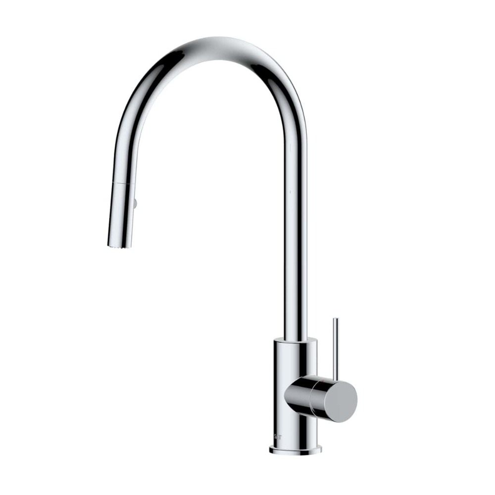Caractéristiques du mitigeur évier à levier sur pied 44 cm avec douchette extractible 2 jets, Swiss Aqua Technologies (SAT) Aurum, chrome brillant (SATBAUR286CR) :