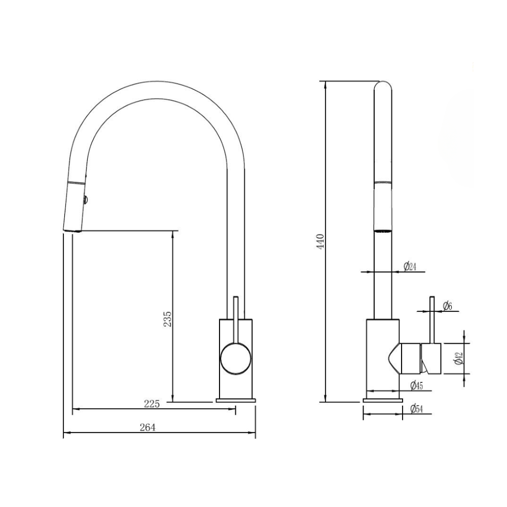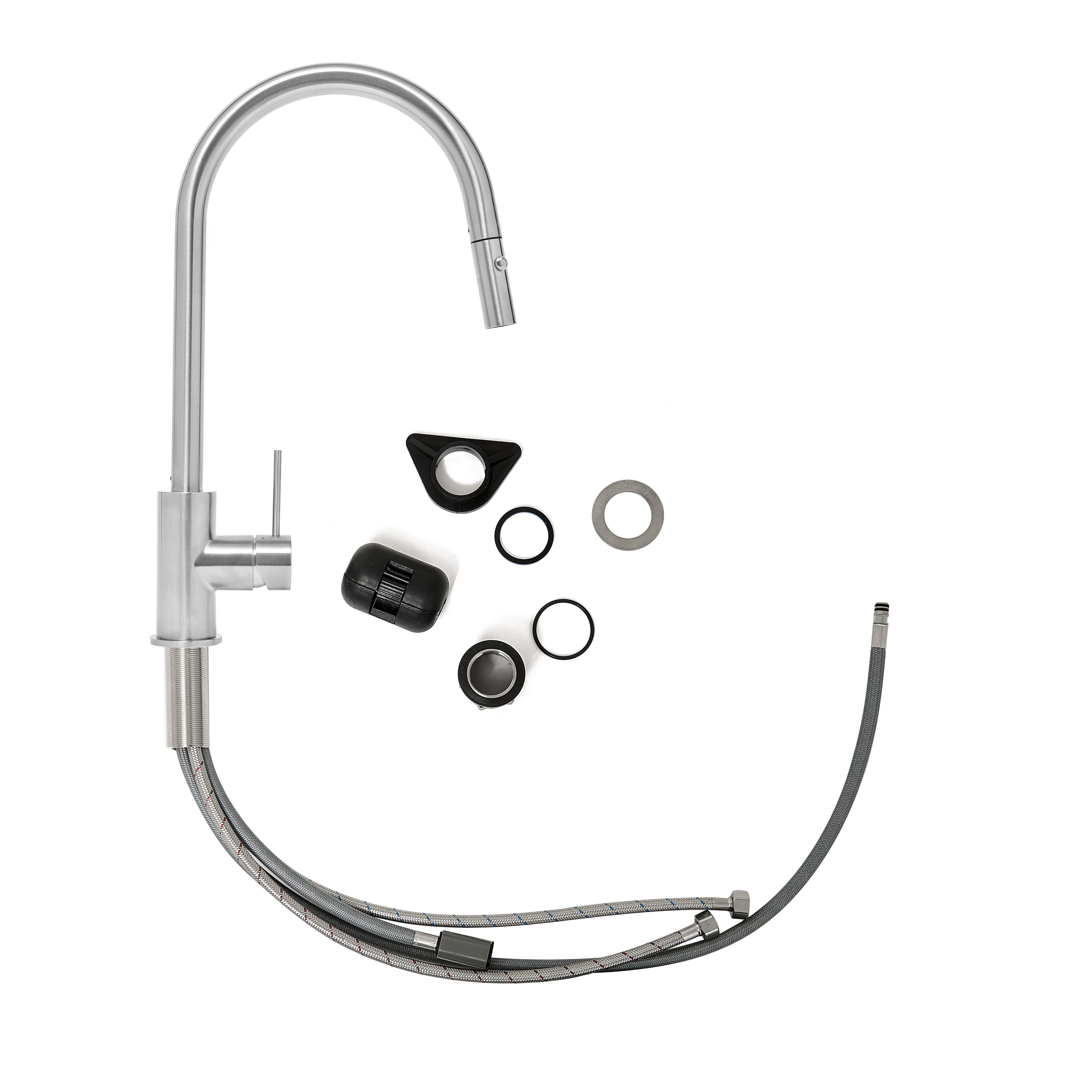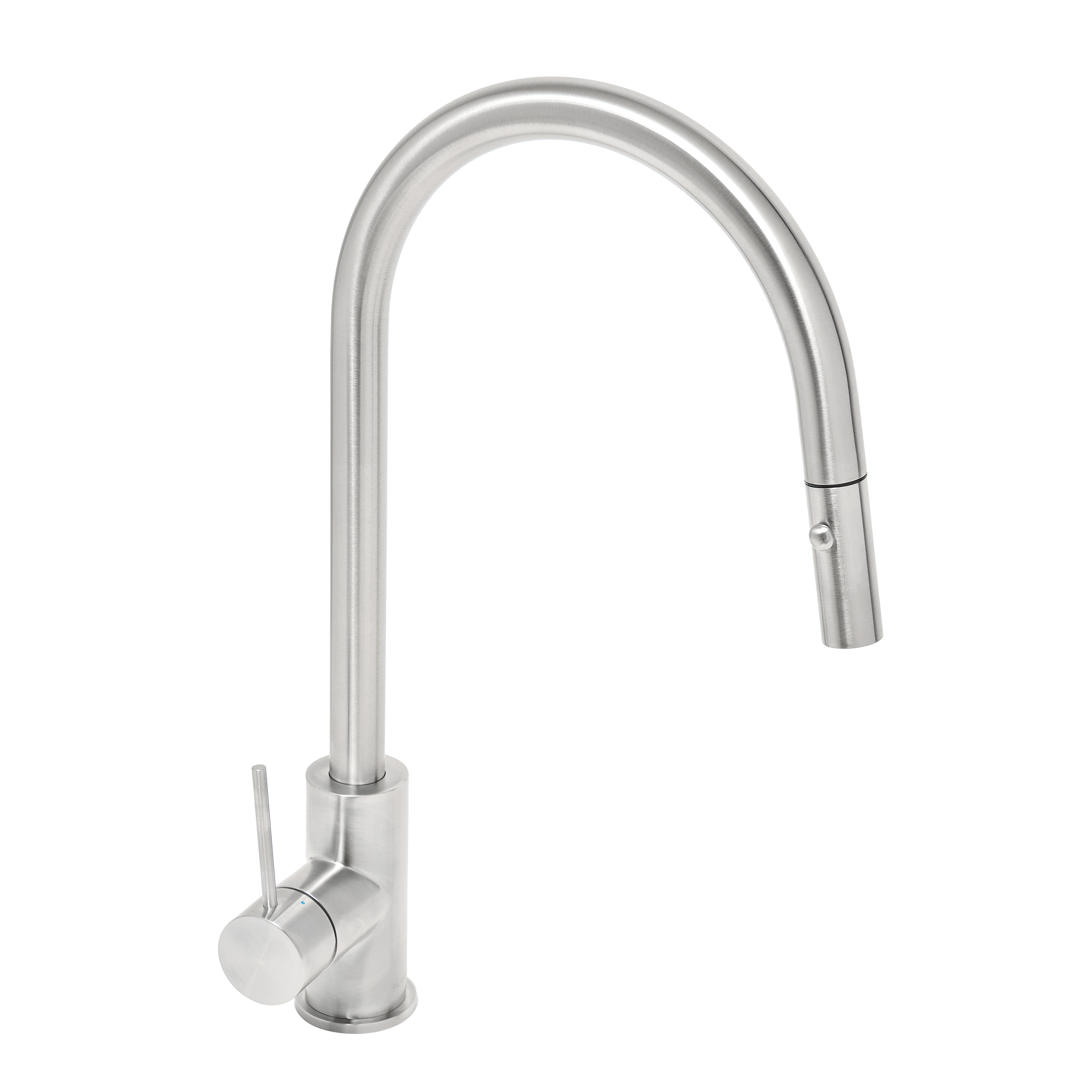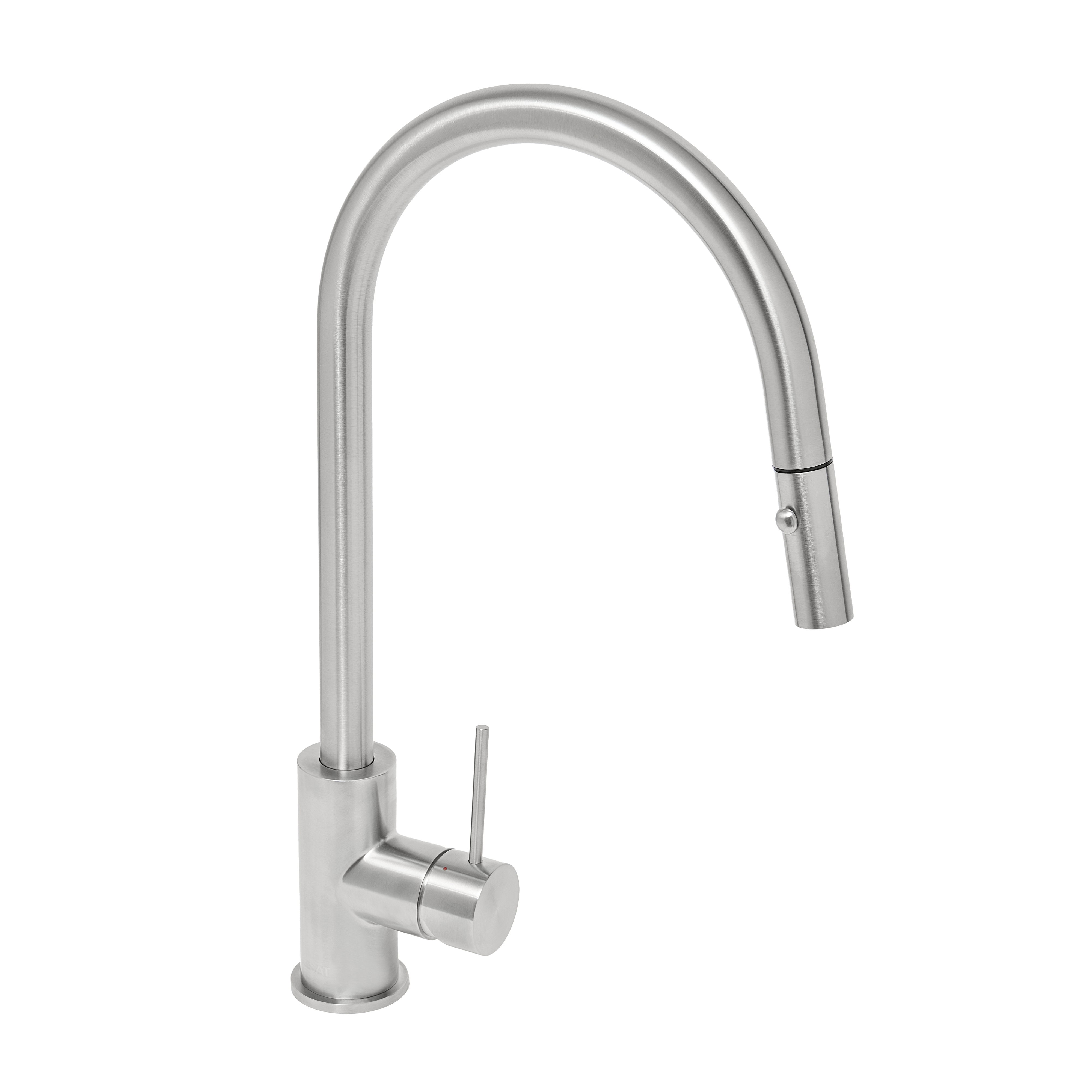 Caractéristiques du mitigeur évier à levier sur pied 44 cm avec douchette extractible 2 jets, Swiss Aqua Technologies (SAT) Aurum, inox (SATBAUR286NRZ) :