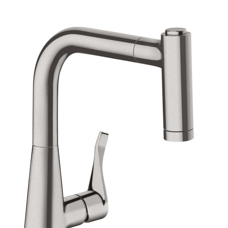 Hansgrohe Metris 220. Mitigeur de cuisine avec douchette extractible 2 jets,fini acier inoxydable (14834800)