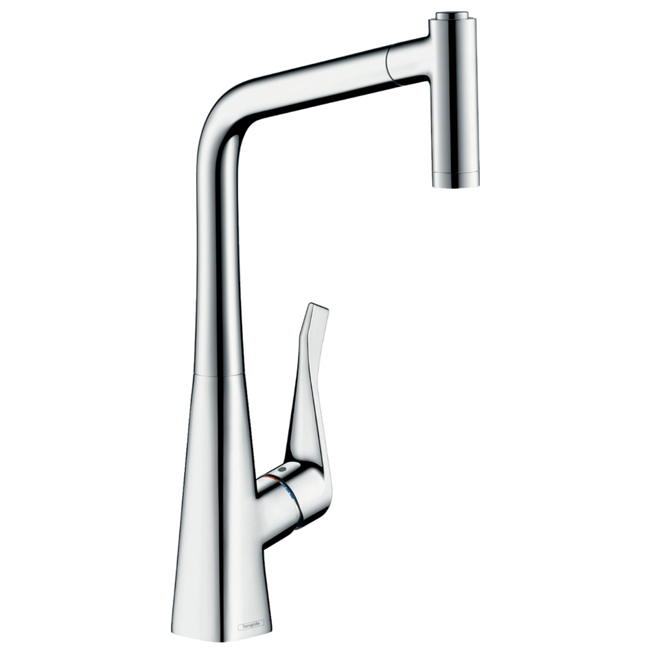 Caractéristiques du Mitigeur d'évier 320 avec douchette extractible 2 jets, Chrome, Hansgrohe Metris M71 (14820000) :