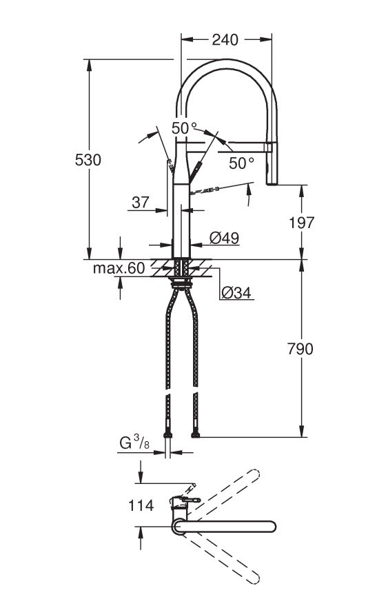 •    Avec flexible hygiénique en santoprene GROHFlexx kitchen
