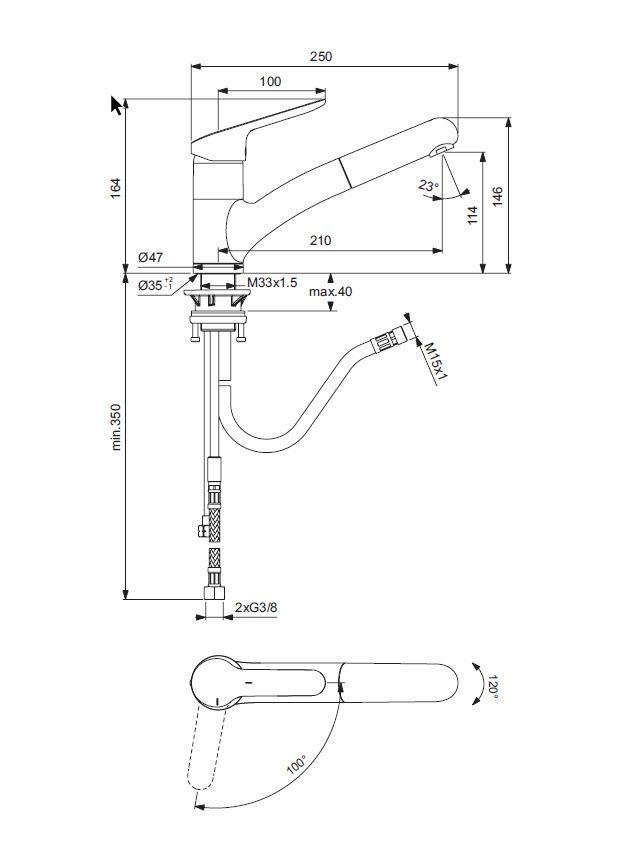 Ideal Standard Mitigeur d'Évier avec douchette, chrome (BC143AA)