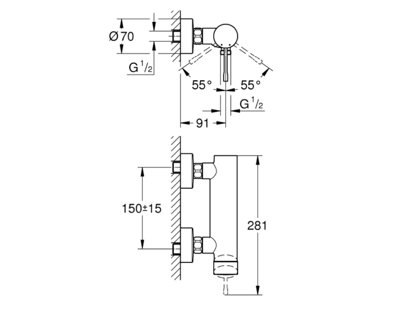 Caractéristiques du Mitigeur monocommande douche 1/2" avec cartouche céramique, Chrome, Grohe Essence (G-25252001) :
