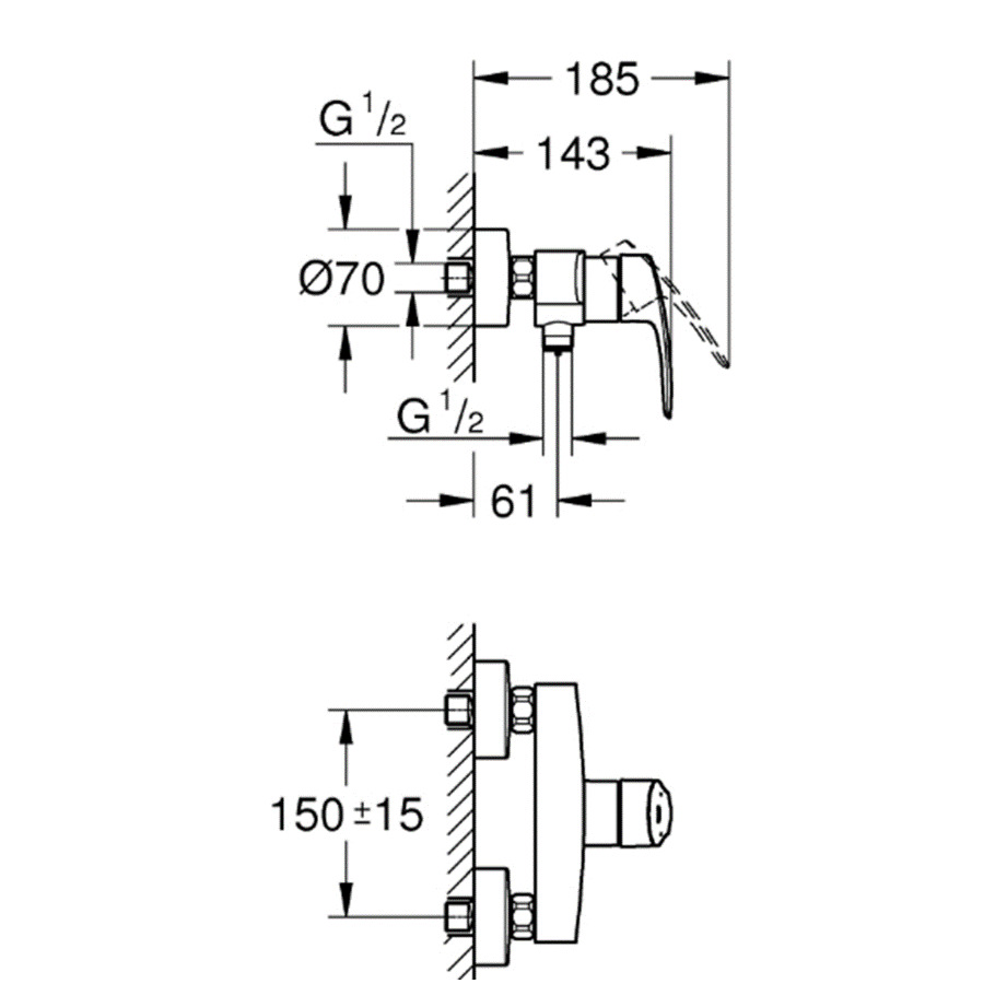 Grohe EUROSMART Mitigeur monocommande de douche 1/2", Chrome (33555003)