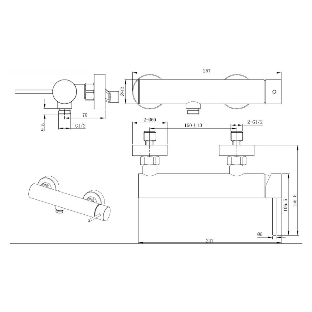 - Espacement entre les robinets : 150 mm
