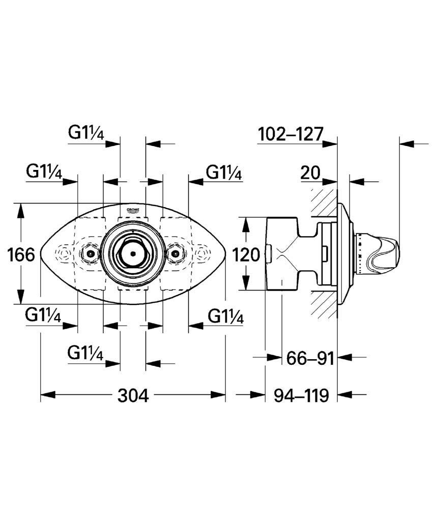 Grohe Grohtherm XL Mitigeur thermostatique collectivité, Chromé (35003000)