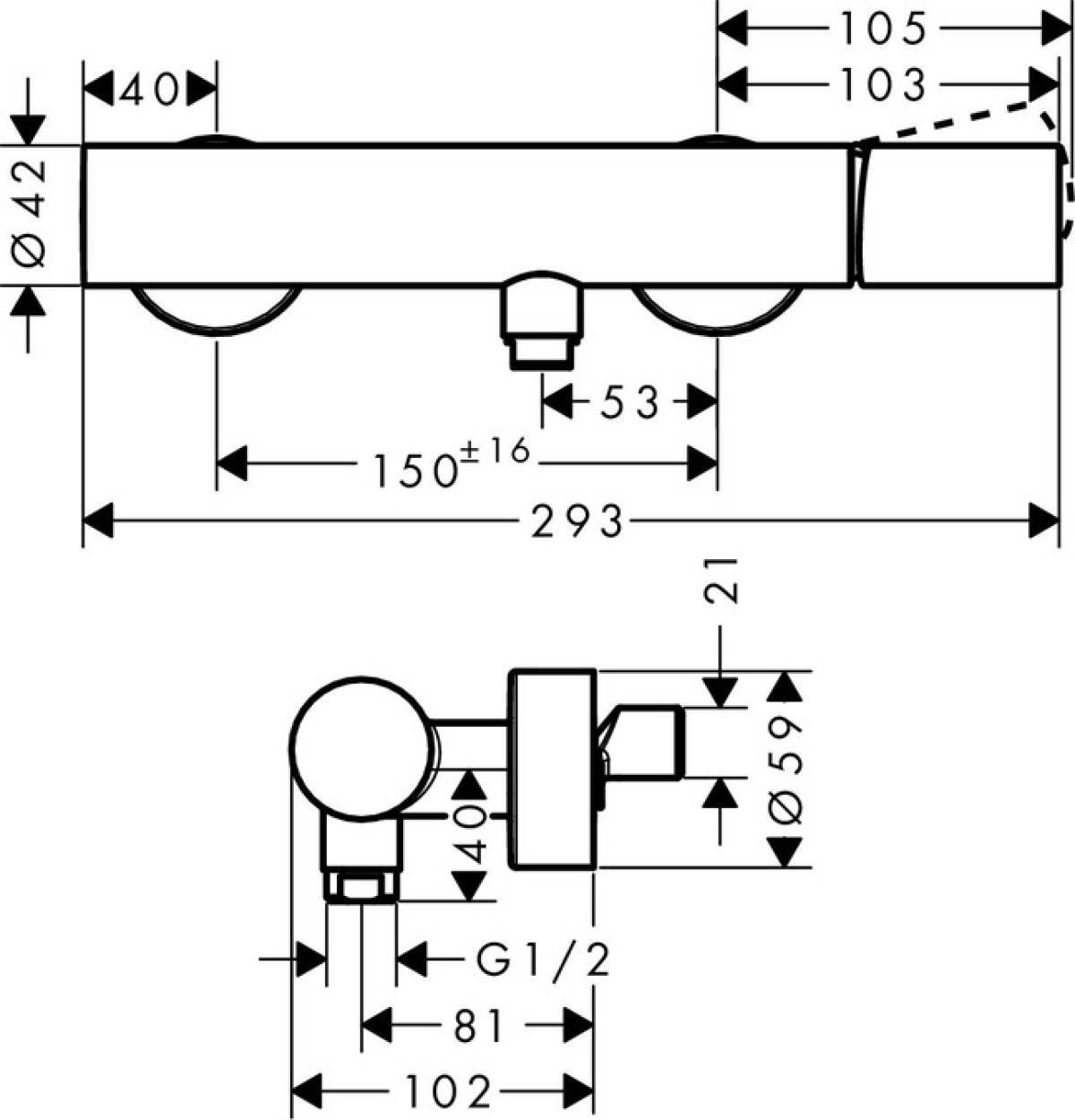 - Entracte : 150 mm±16 mm