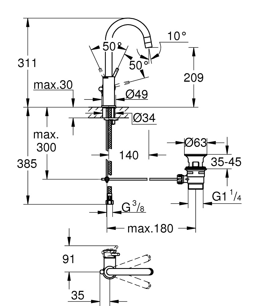 Grohe Start Classic mitigeur monocommande lavabo taille L (23783000)