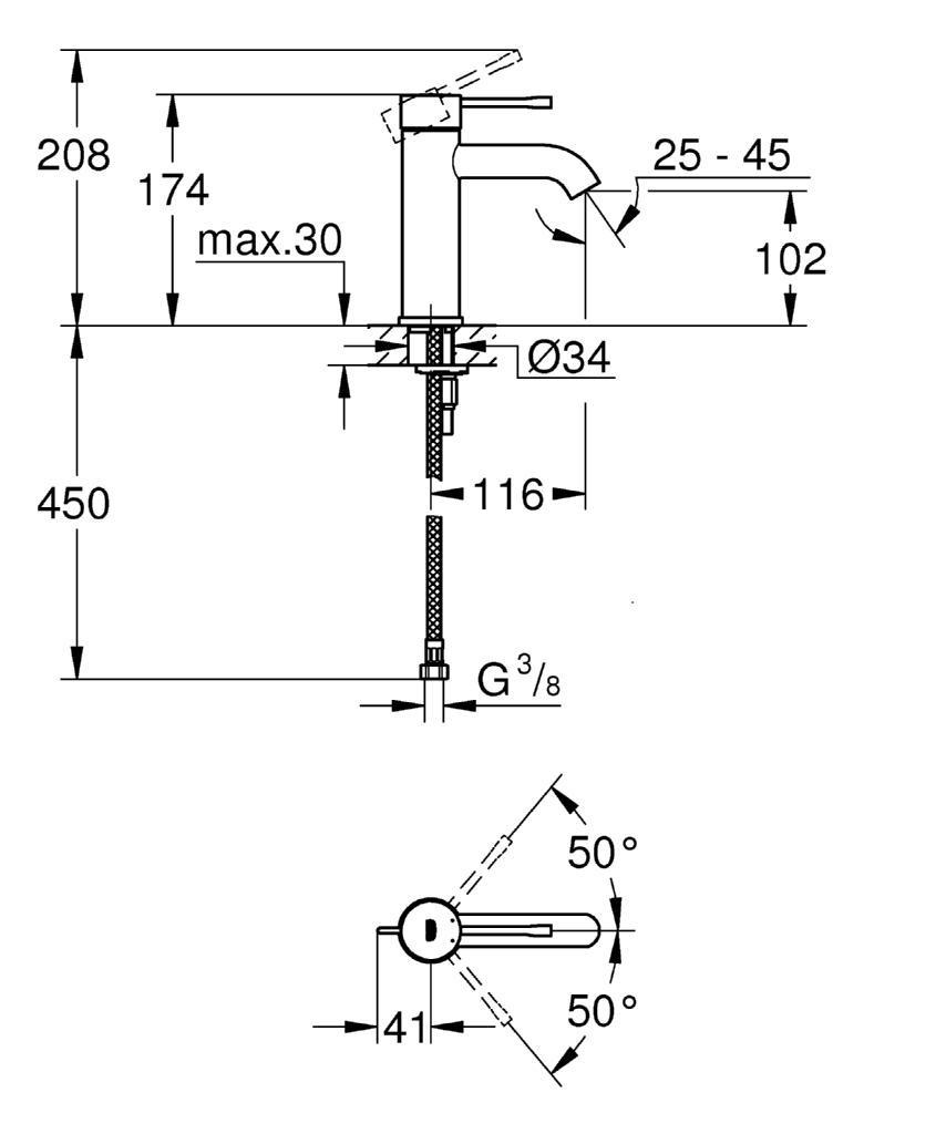 Grohe Essence - set mitigeur de lavabo taille S + Bonde clic clac Grohe pour lavabo avec trop-plein (23590001-CLICCLAC)