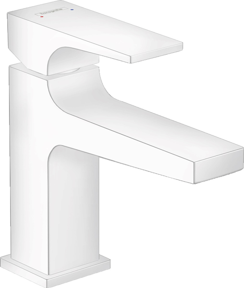 Caractéristiques du mitigeur de lavabo 100 poignée manette bec court, bonde Push-Open, Blanc mat Hansgrohe Metropol (32500700) :
