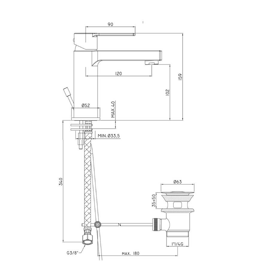 - Hauteur du bec : 102 mm