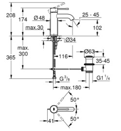 Grohe Essence Mitigeur monocommande taille S avec tirette et vidage, cartouche en céramique, Supersteel (24171DC1)