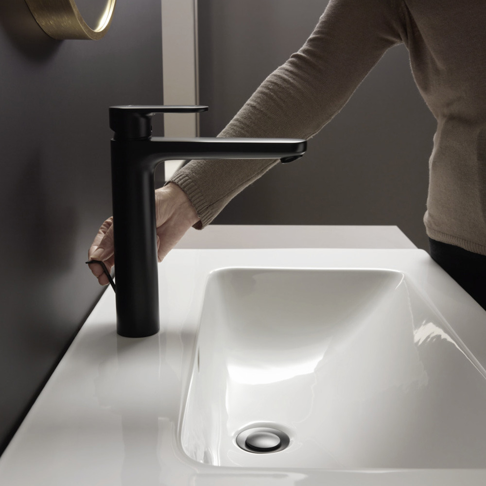 Caractéristiques du Mitigeur de lavabo 190 avec tirette et vidage synthétique, Noir mat, Vernis Blend Hansgrohe (71552670) :