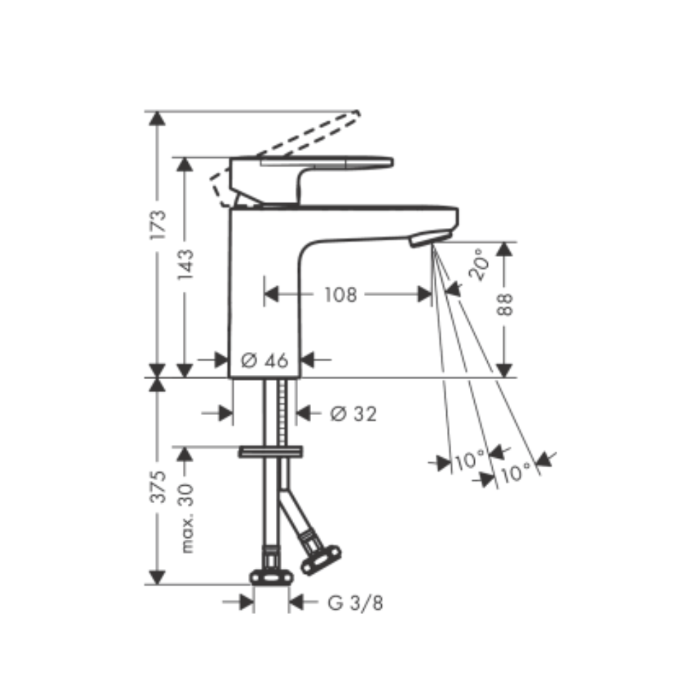 Caractéristiques du Mitigeur de lavabo ComfortZone 100 avec cartouche céramique, Chrome, Hansgrohe Vernis Blend (71580000) :
