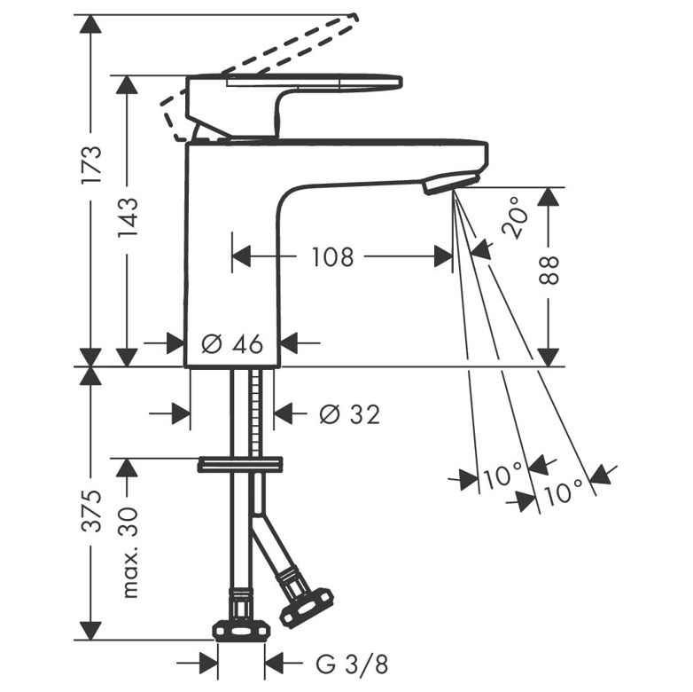 Caractéristiques du Mitigeur de lavabo ComfortZone 100 avec cartouche céramique, Noir mat, Hansgrohe Vernis Blend (71580670) :