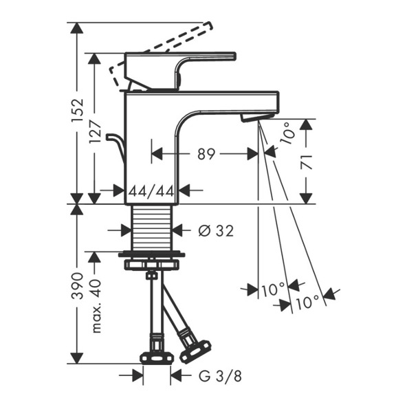 Caractéristiques du Mitigeur de lavabo, avec tirette et vidage synthétique, Chrome, Hansgrohe Vernis Shape (71560000) :