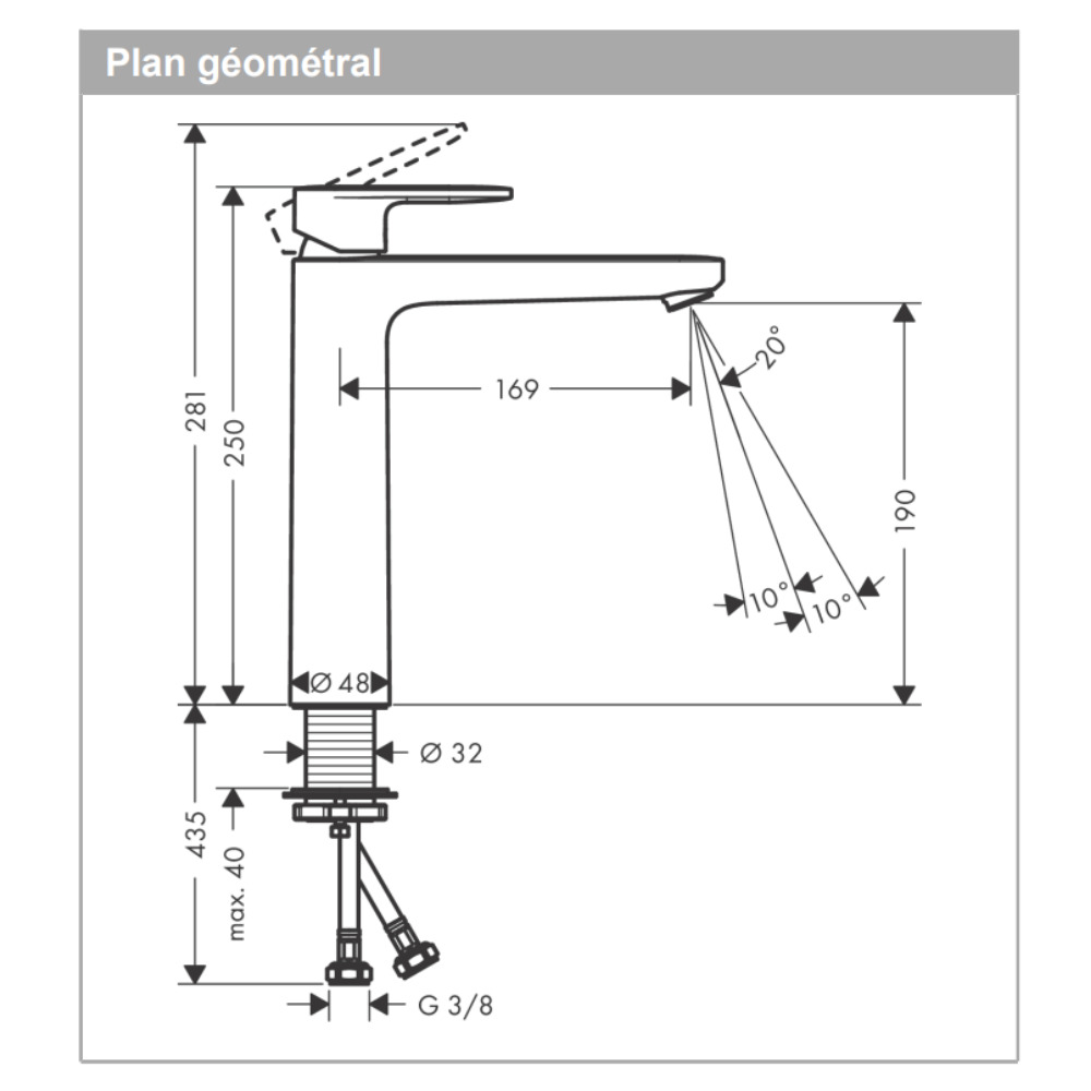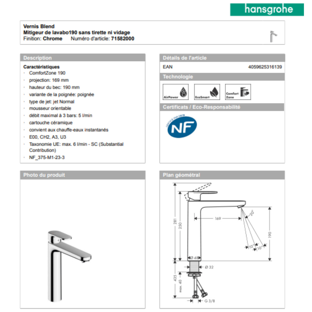 Caractéristiques du mitigeur de lavabo Hansgrohe, EcoSmart, comfort zone, chrome (71582000)