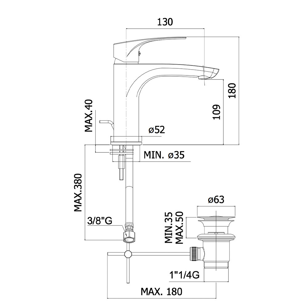 Caractéristiques du mitigeur monocommande 1/2" Lavabo, avec tirette et vidage, Chrome (SATBSPRO275):
