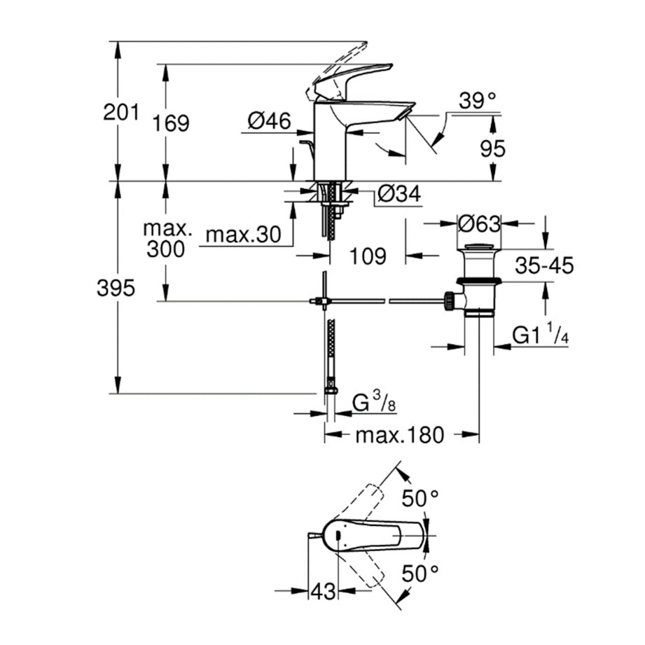 - Hauteur du bec:95mm