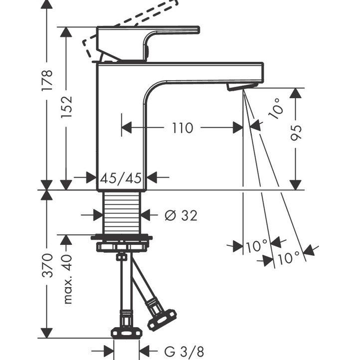 Caractéristiques du Mitigeur de lavabo ComfortZone 100 avec cartouche céramique, Chrome, Hansgrohe Vernis Shape (71569000) :