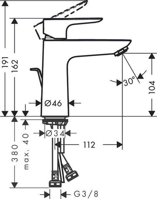 Hansgrohe Talis E mitigeur de lavabo 110, avec tirette et vidage, noir chromé brossé (71710340)