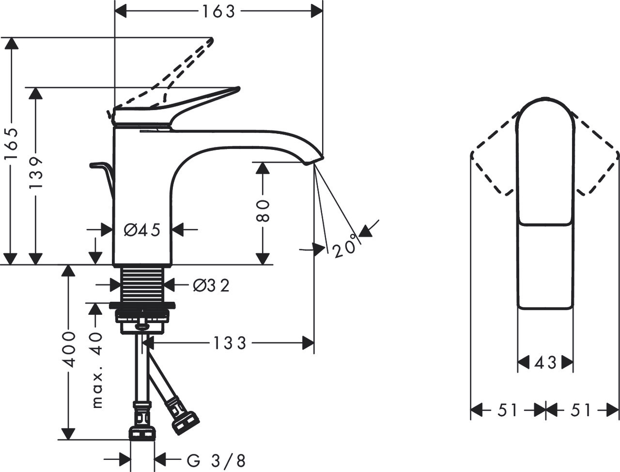 Hansgrohe Vivenis Mitigeur de lavabo 80 avec tirette et vidage, bec cascade, chrome (75010000)