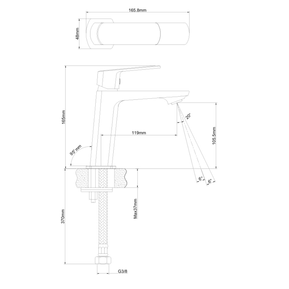 Caractéristiques du mitigeur lavabo Feel, sans tirette, noir mat, (SATBSFEEL271C):