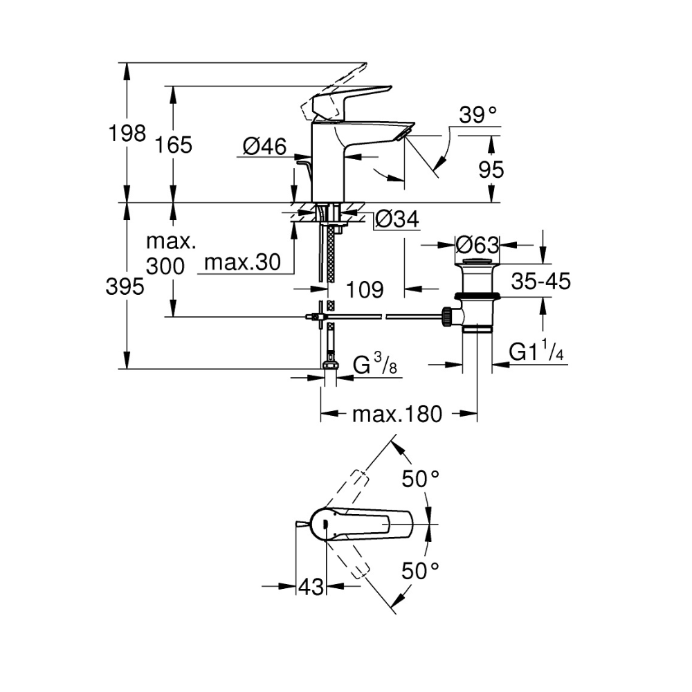 Caractéristiques du mitigeur monocommande pour lavabo, taille S, Grohe Start, noir mat (242092432) :